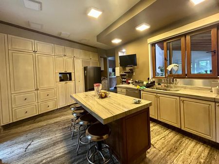 Todo en acabados de finas maderas, mármol, techos altos, cancelería alemana de piso a techo, sistema hidroneumático, calefacción hidrónica, aire acondicionado, paneles solares, cisterna, etc.