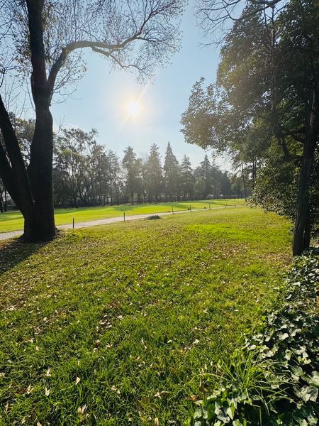 Amplios ambientes de jardín con impecable césped y plantas decorativas con frondosos árboles. Al costado, espacio para armar tu propio huerto de especias, verduras y árboles frutales. Vista al fairway con privacidad.
